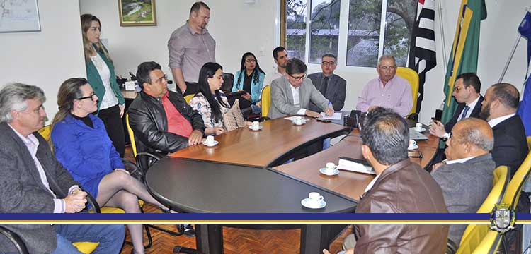 Os prefeitos de Saltinho, Elias Fausto, Mombuca e Rafard se reuniram no gabinete do chefe do Executivo de Rio das Pedr ...