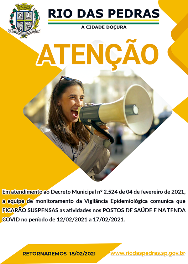 A PREFEITURA DE RIO DAS PEDRAS, ATRAVÉS DA SECRETARIA MUNICIPAL DE SAÚDE, INFORMA: