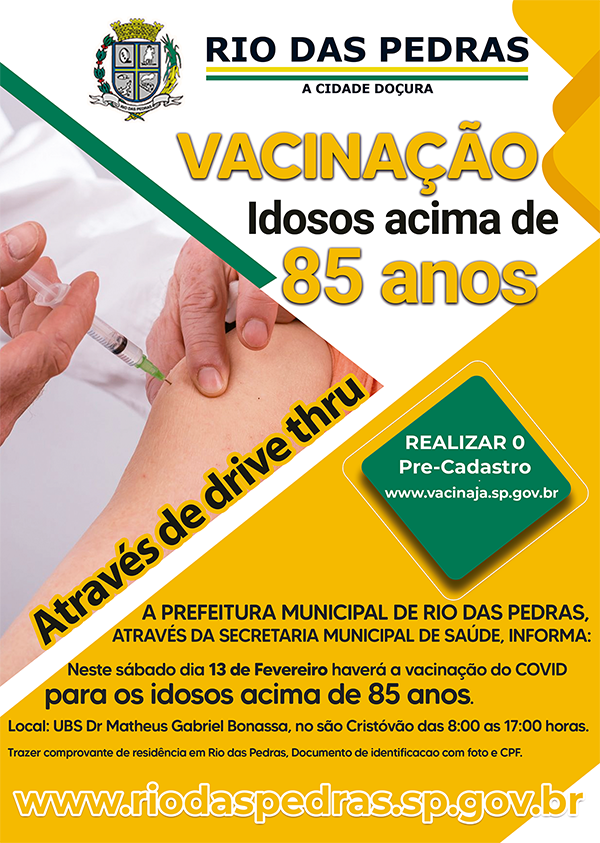 Neste sábado dia 13 de Fevereiro haverá vacinação do COVID para os idosos acima de ...