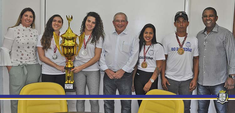 Os atletas rio-pedrense que conquistaram medalhas nos Jogos Regionais foram recebidos pelo prefeito Carlos Defavari em ...