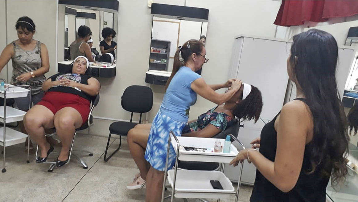 São dez mulheres que serão capacitadas para a execução de técnicas da maquiagem profissional, aplicando diferentes tipos de produtos adequados para ocasiões específicas e/ou características físicas do cliente. Com duração de 15 dias, o curso tem como objetivo gerar oportunidade de emprego e renda através da qualificação profissional.