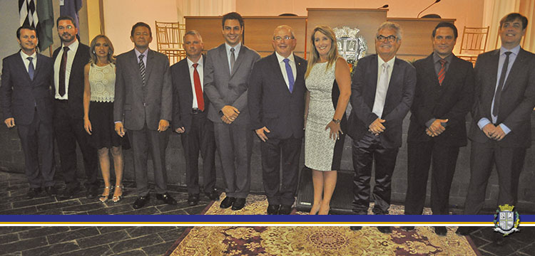 No inÃcio da cerimônia, os eleitos foram chamados, um de cada vez, para compor o palco. A entrada de Carlos Defavari, acompanhado de sua esposa Vanda, foi acompanhada em pé pelos presentes com uma chuva de aplausos.
