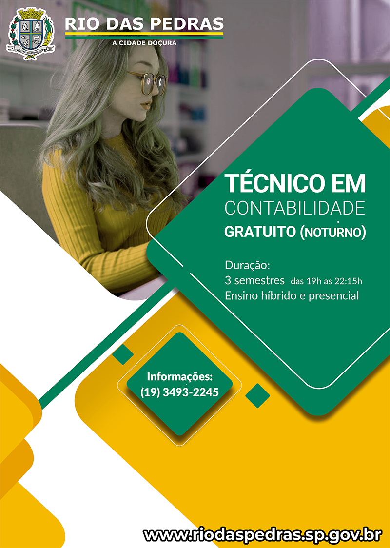 Estão abertas as inscrições para o Curso Técnico em Contabilidade, na Escola de Comércio, em Rio das Pedras. O T ...