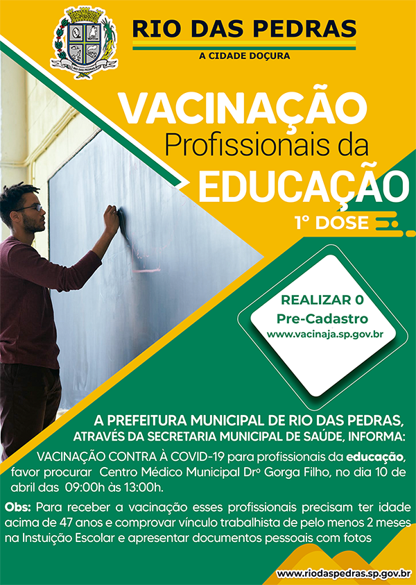 O município de Rio das Pedras inicia neste sábado 10/04/2021 a vacinação contra a Covid-19 de professores e funcion&aac ...
