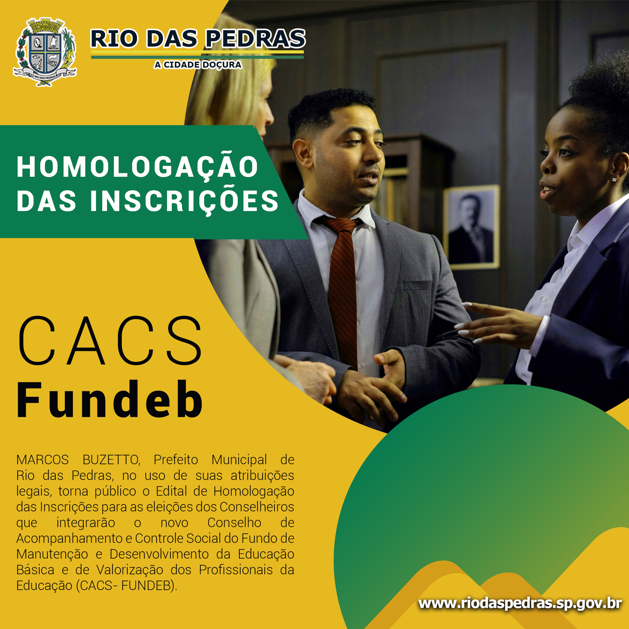 MARCOS BUZETTO, Prefeito Municipal de Rio das Pedras, no uso de suas atribuições legais, torna público o Edit ...