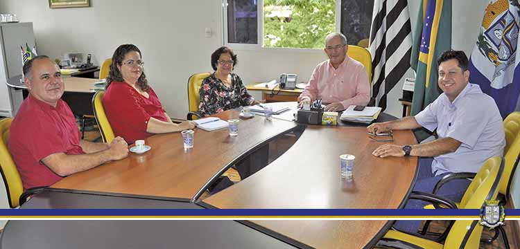 O prefeito Carlos Defavari e Glória Manesco Ebúrneo, secretária de Educação, se reu ...
