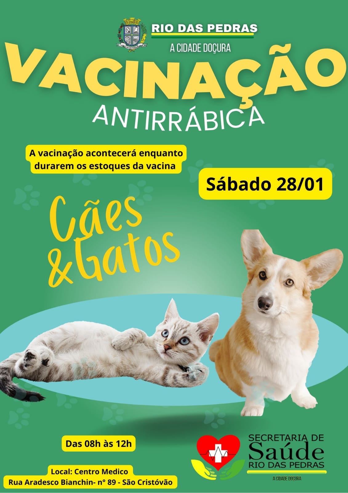 Dia 28/01 é dia de levar o seu animalzinho de estimação para passear e se vacinar.