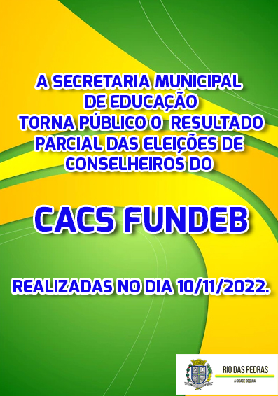 A SECRETARIA MUNICIPAL DE EDUCAÇÃO TORNA PÚBLICA RESULTADO PARCIAL DAS ELEIÇÕES DE CONSELHEIROS DO CACS FUNDEB REALIZADAS NO DIA ...