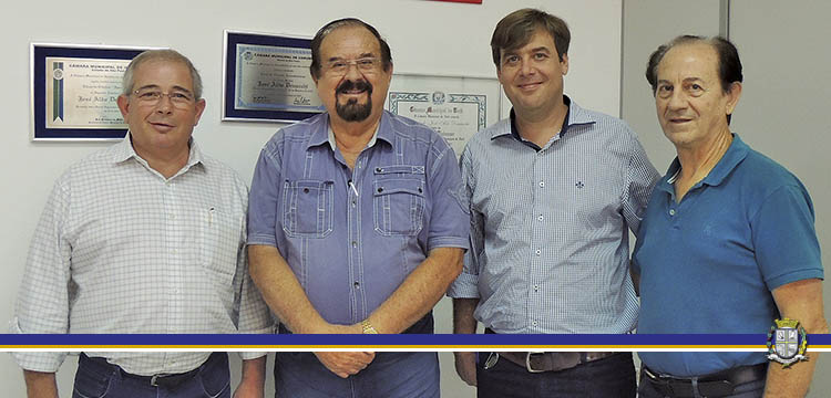 O prefeito Carlos Defavari, junto com o chefe de Gabinete Eduardo Marrano, e o vereador Leandro Penatti estiveram reun ...