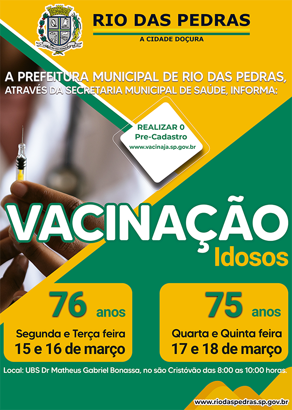 O município de Rio das Pedras inicia neste sábado 10/04/2021 a vacinação contra a Covid-19 de professores e funcion&aac ...