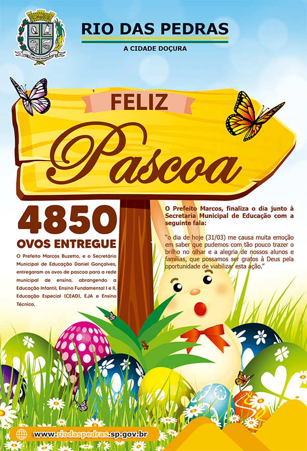 WhatsApp PREFEITURA DE RIO DAS PEDRAS FAZ DISTRIBUIÇÃO DE OVOS DE PÃSCOA AOS ALUNOS DA REDE MUNICIPAL DE ENSINO